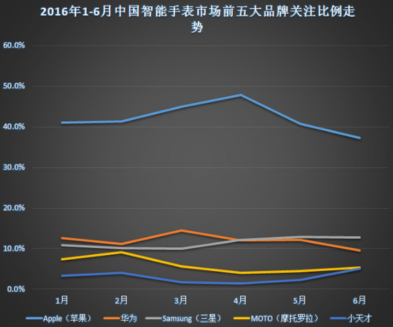 第三部分:2016年上半年中国智能手表市场5大品牌关注度——苹果成智能手表救星 盘活整条产业链