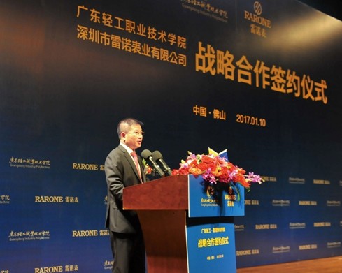 正如雷诺表业董事长詹西洲先生所述,当下,随着经济发展进入新常态,人才供给与需求关系发生变化,中国制造2025、创新驱动发展战略、“互联网+”、大众创业万众创新、“一带一路”等国家重大战略的实施,对高等教育,特别是专业人才培养提出了更高要求。随着雷诺表业与广东轻院战略合作的提出,两者的合作将切实改革人才培养模式,成为高职院校推动教育教学改革与产业转型升级衔接配套的一条有效途径。
