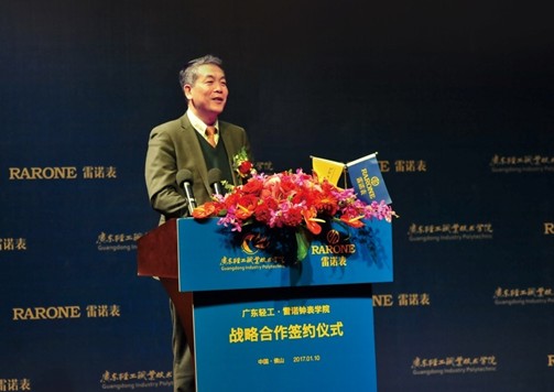 实体经济是国民经济的主体,是立国之本、兴国之器、强国之基,“中国制造2025”提出,坚持“创新驱动、质量为先、绿色发展、结构优化、人才为本”的基本方针,坚持“市场主导、政府引导,立足当前、着眼长远,整体推进、重点突破,自主发展、开放合作”的基本原则,通过“三步走”实现制造强国的战略目标,而中国作为钟表制造大国,如何从钟表大国向钟表强国转型成为整个行业思考的重点!就在2017年1月10日,广东轻工职业技术学院联合中国著名钟表企业深圳雷诺表业有限公司,共同发起并创办中国首家钟表学院—广东轻院·雷诺钟表学院,她的诞生标志着中国钟表产业终于有了自己第一个教学基地。