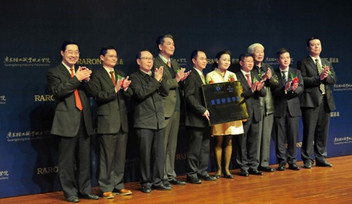 校方、协会代表以及企业代表的精彩讲话赢得了在场嘉宾的热烈掌声,在政府领导、协会领导以及在场嘉宾的见证下,广东轻工职业技术学院与深圳雷诺表业有限公司双方正式签署战略合作协议。紧接着,在主持人的介绍下,全国首个钟表行业人才培训基地——广东轻院·雷诺钟表学院的揭牌仪式引起了全场的热烈关注,双方领导在多方见证下完成了意义非凡的揭牌仪式。