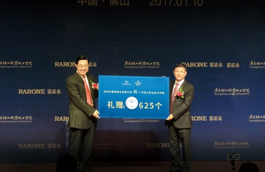 (雷诺表业向广东轻院礼赠挂钟625个)