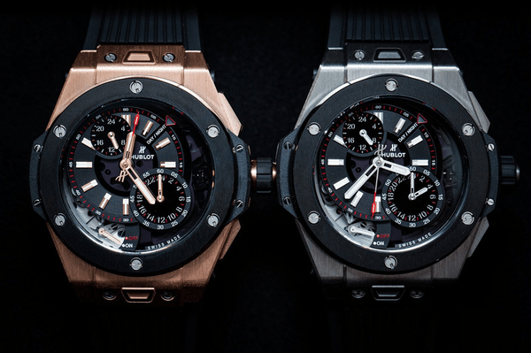 在2015年巴塞尔展上,宇舶表展出了为庆祝 Big Bang 系列腕表诞生 10 周年,挑战功能性极强的高级复杂制表——报时闹表。Big Bang 报时闹表完美融合两种复杂功能——机械闹钟和第二时区显示。三角形窗口位于 1 点钟位置,可逐步显示当地时间的白天与夜晚。位于 5 点钟位置的 24 小时计时器拥有两个指针,用于显示设置好的闹响时间。同时,6 点钟位置的“ON/OFF”标识显示闹钟开启或关闭状态。