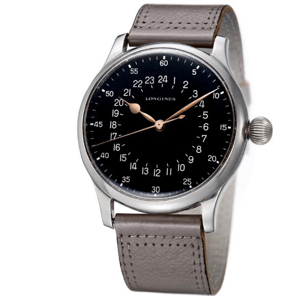 浪琴表24小时腕表是专门为飞行员表开发而出的时计,配备L704.2自动上链机芯,指针每24小时绕表盘走一圈。表盘为哑光黑色,拥有24个白色阿拉伯数字,涂以超亮夜光涂料,并有一个铁轨形分钟刻度圈。腕表以夜光指针指示时间,且拥有一个中央秒针。3点钟位置设计有日期显示窗。人工合成蓝宝表镜保护表盘。配备有黑色短吻鳄鱼皮带,防水功能达3个大气压力。