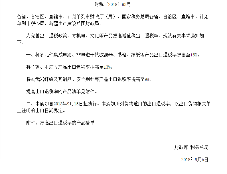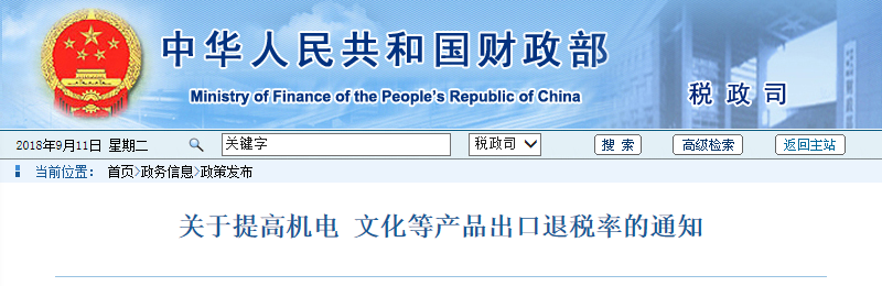 发布时间:2018-09-11 作者:财政部税政司 来源:财政部税政司