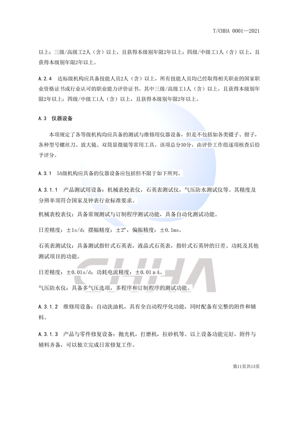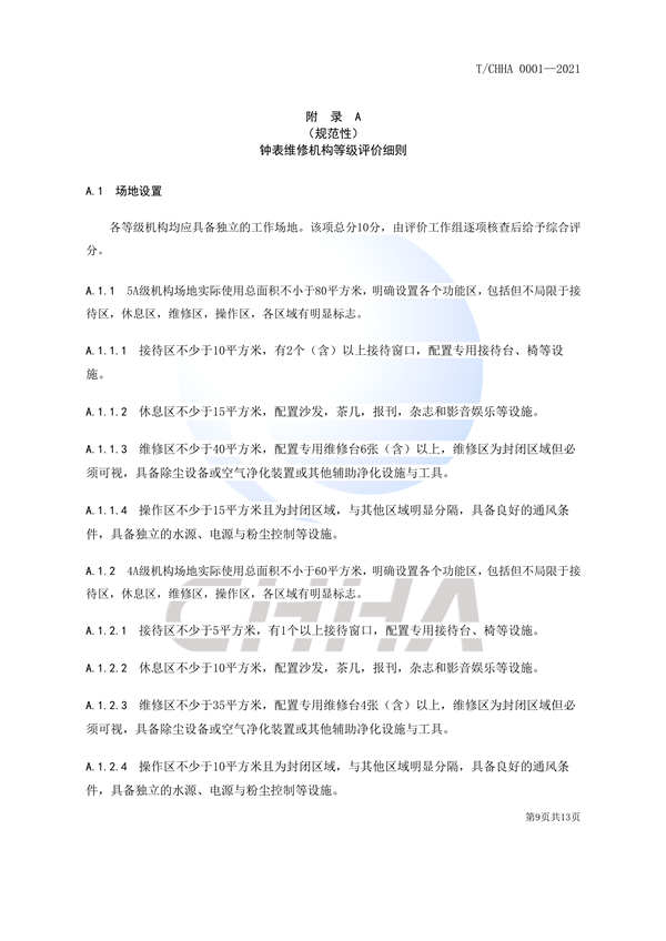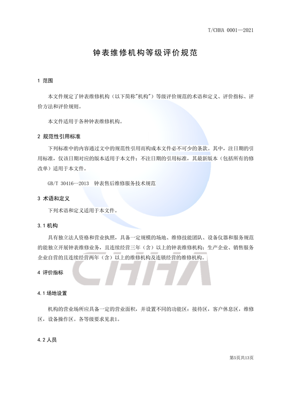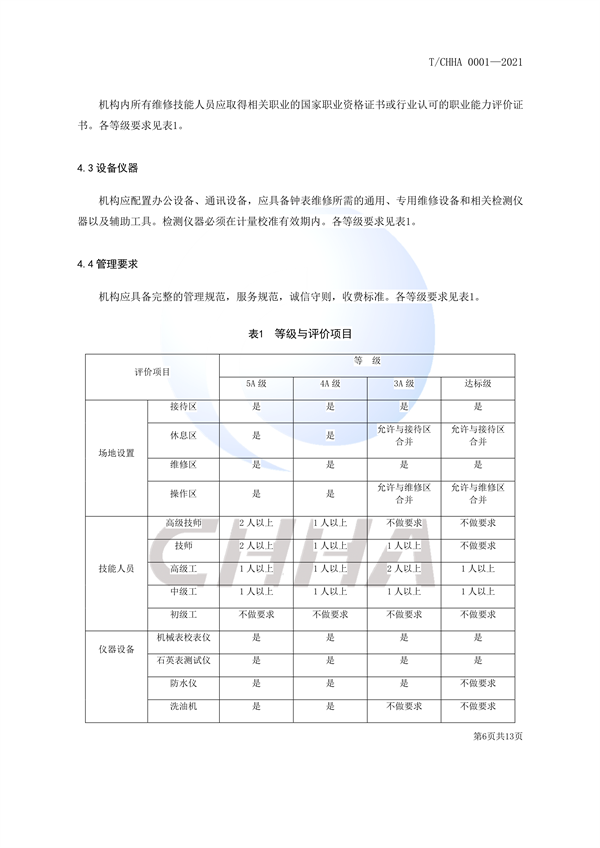 钟表维修机构等级评价规范团体标准