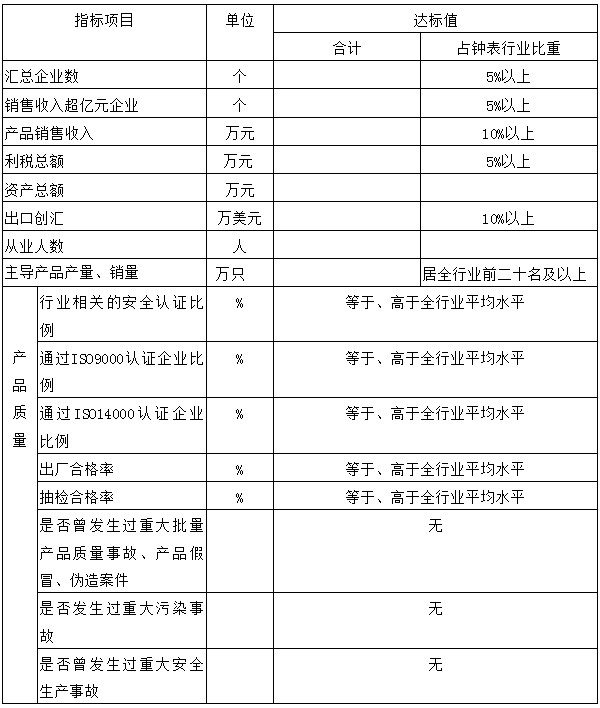 (二)“中国钟表产业基地(之城)”达标评价指标