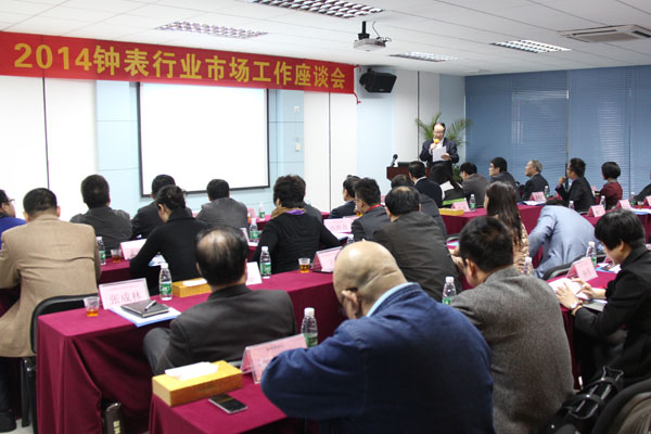 康巴丝、广州锦东钟表商城、迈尔格、飞亚达、海鸥、罗西尼、依波、天王、义乌钟表协会、富达、辽宁孔雀表业、宜美、厦门钟表协会、嘉域表业、广州新钻表业、雷诺、广州宏泰表业、北极星等企业和协会代表分别介绍了本企业和地区钟表销售情况,讨论了2014年钟表市场及品牌发展趋势;国内一二线城市高档商店市场走势,对行业市场工作提出了建议和看法。