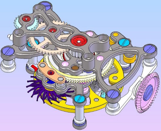 我对于多轴陀飞轮或者称为立体旋转陀飞轮的研究将近五年的时间,此技术存在的时间其实很久了,虽然没有基础陀飞轮那么漫长,但是也曾经被制表大师染指过。只不过受限制于科技的水平没有产量化,非常稀有。进入二十一世纪,科技的发展迅猛,特别是数控CNC机床的普及让陀飞轮的制作成为产业化,各类复杂款陀飞轮层出不穷,而最能够体现陀飞轮理念、动态美感与时代科技水平的立体旋转陀飞轮脱颖而出。