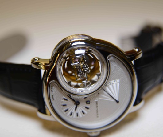 海鸥在今年的巴塞尔钟表展上,推出了更为复杂的“奇翼陀飞轮2号”--三轴立体旋转陀飞轮。此款在外观上看虽然与去年的双轴陀飞轮相比很相近(与我的理想状态还有较大的距离),但是此技术确实又是一次突破。其核心在于如何让陀飞轮的三个被串联在一起的顺畅的联动,特别是要把自己的设计理念融入进去。