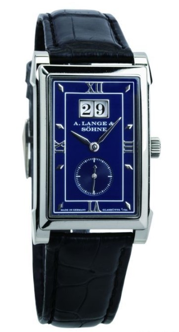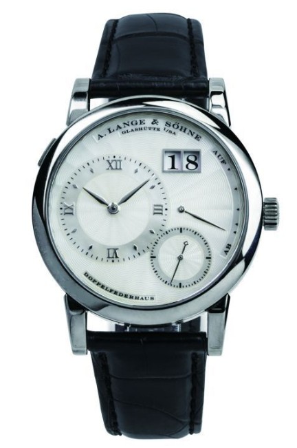 第22号拍品:朗格大窗日历18K白金壳白金扣背透手上链腕表
