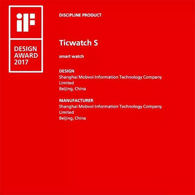第一款代号为Ticwatch S,目前所了解到的信息不多,可以确认其是一款主打多功能运动独立NFC的智能手表,从获得德国iF设计奖来看,Ticwatch S外观设计时尚新潮,动感十足。